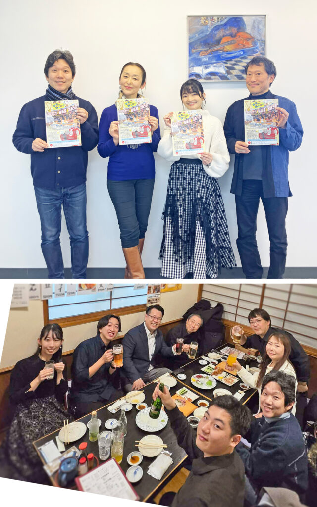 写真は①の打合せ(平先生・吉田仁美さん・岩村先生)、③の指揮者(深石先生)・ピアニスト(渡辺さん)と!