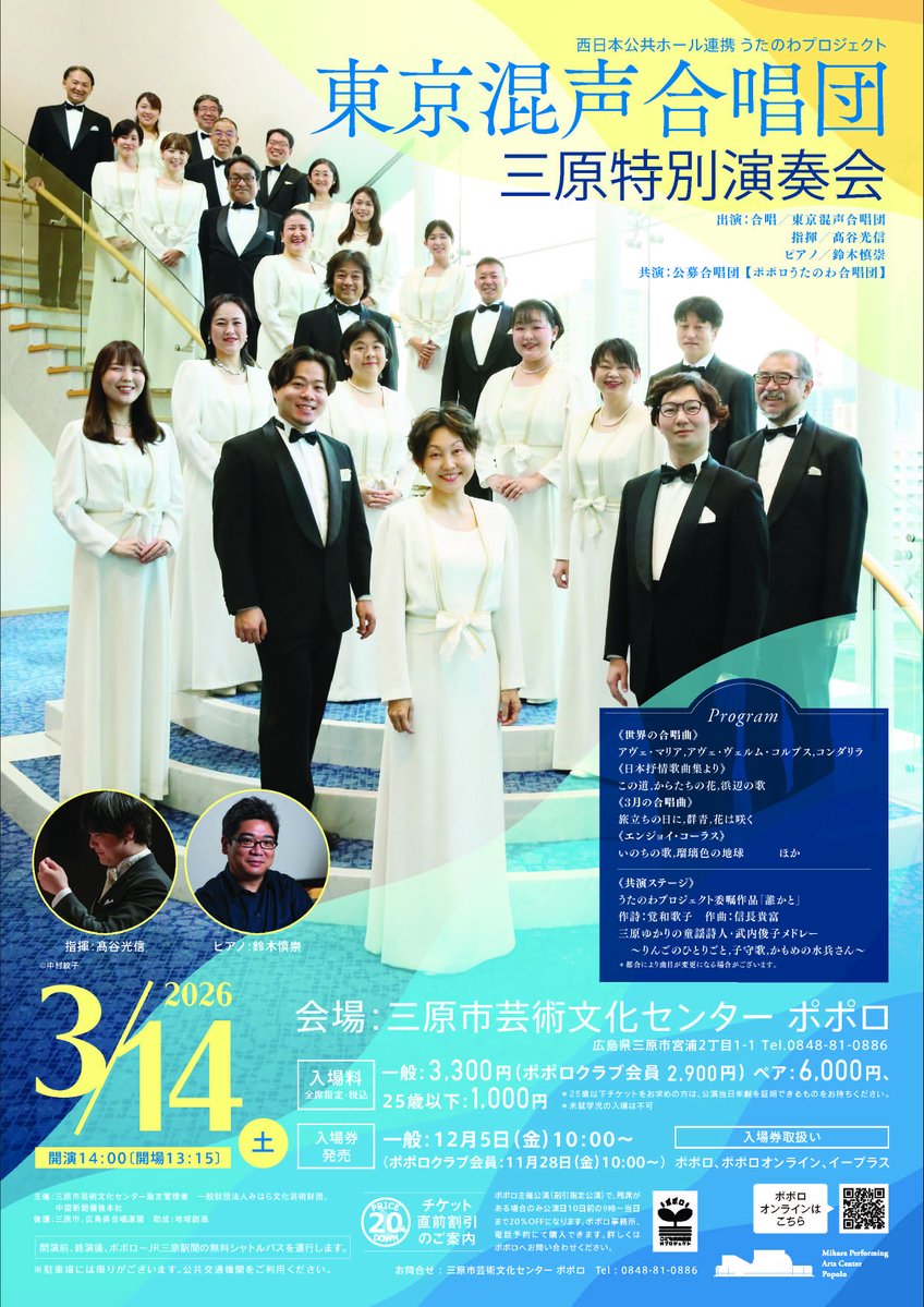 3/14に東京混声合唱団さんの三原公演が開催されます。